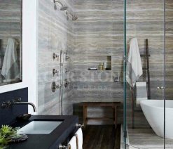 Nach dem Spachteln und Polieren mit einem anderen Merkmal entsteht ein hölzernes Aussehen mit dunkelbraunen Linien in grauer Farbe. Die Preise für silbernen Travertin variieren je nach Größe und Qualität. Sie können uns für Preisinformationen kontaktieren.