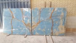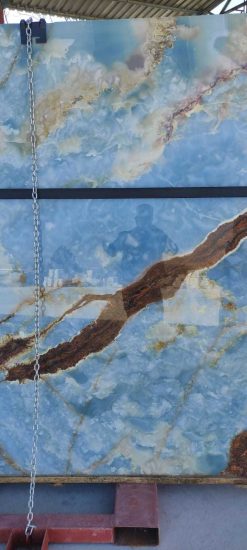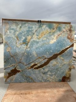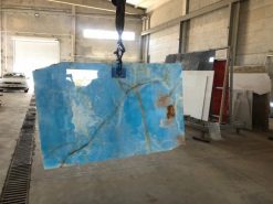 Blue Onyx Marble is the stone that has white colors behind its main tone. It is used in modern villa floor and wall coverings. Resembling the sky with its texture and colors, marble also has a refreshing and peaceful atmosphere. Surface shapes can be distinguished such as honed and unhoned, polished and unpolished. Upon special request, cutting processes are applied as 1 cm, 2 cm, 2.5 cm and 3 cm.