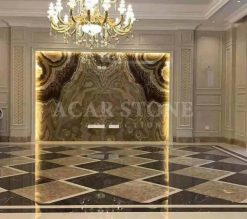 Brown Onyx has extensions, isohips between the main color rather than white. It appears in decorative ornaments. It is used in floor and wall coverings. It is the onyx model, which has the most unique place among onyx varieties due to its color and texture. Thanks to our advanced technology equipment and our company, special cuts, 1 cm 2 cm. 2.5 cm. and 3cm. as we provide.