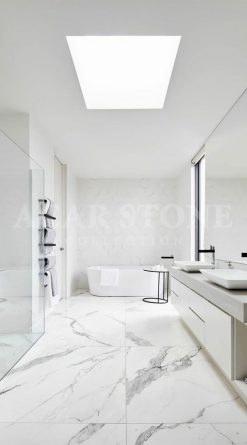 Nous disons blanc car c’est un type de marbre avec un faible taux de grisaille. Il n’est pas classé en fonction du taux de grisaille qu’il contient. Les veines grises du marbre Calacatta sont plus épaisses que celles du marbre Carrara. Les motifs des veines qui passent des tons gris à lacouleur dorée valent vraiment la peine d’être vus. Ce qui distingue le Calacatta des autres marbres italiens, c’est que le gris étalé sur le blanc est dense et fortement veiné.